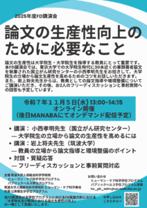 【学内限定】FD講演会「論文の生産性向上のために必要なこと」